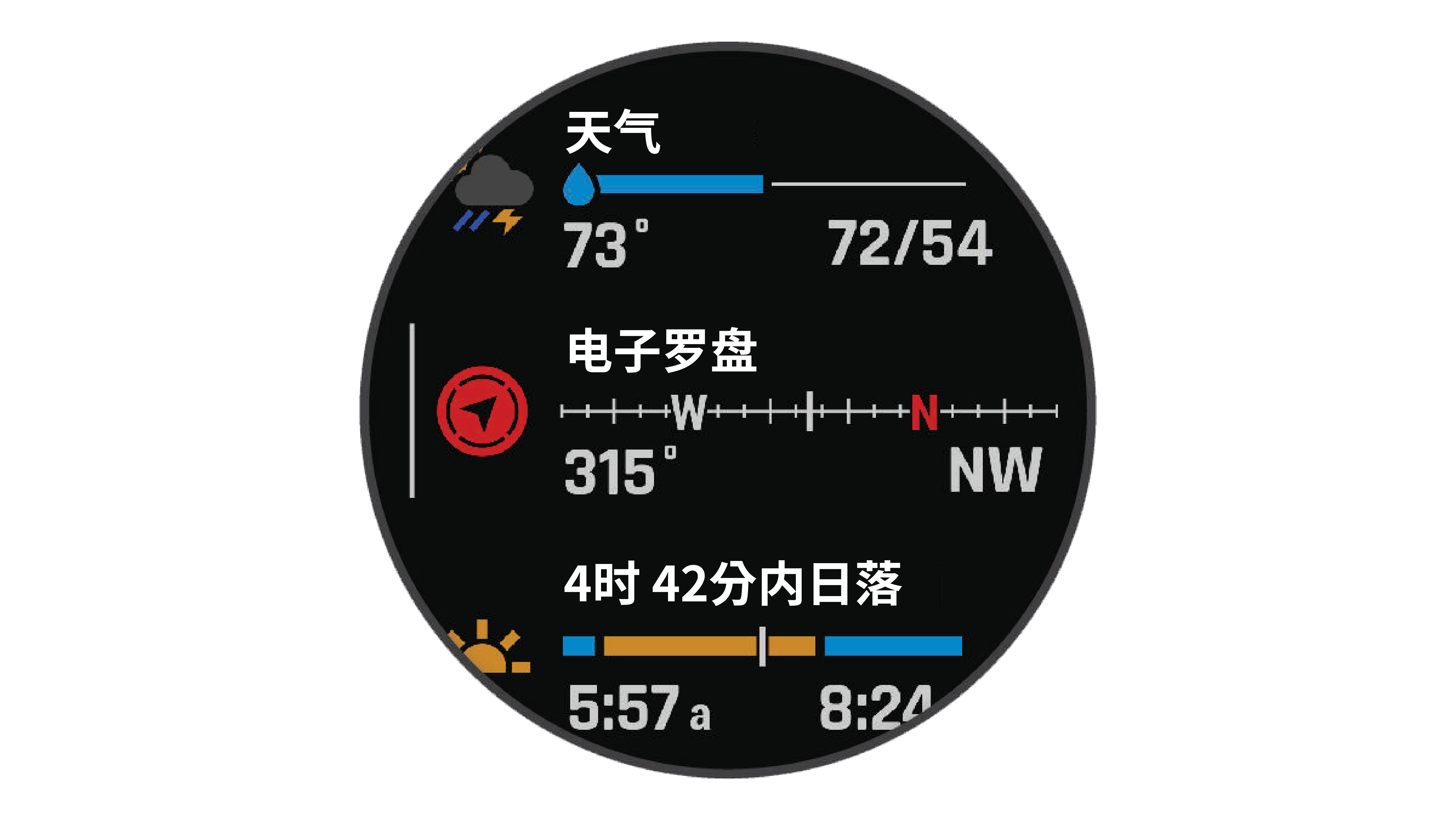 小工具可以快速访问健康数据、活动信息、内置传感器等。与手机配对后,可以查看手机中的数据,例如通知、天气、日历等。