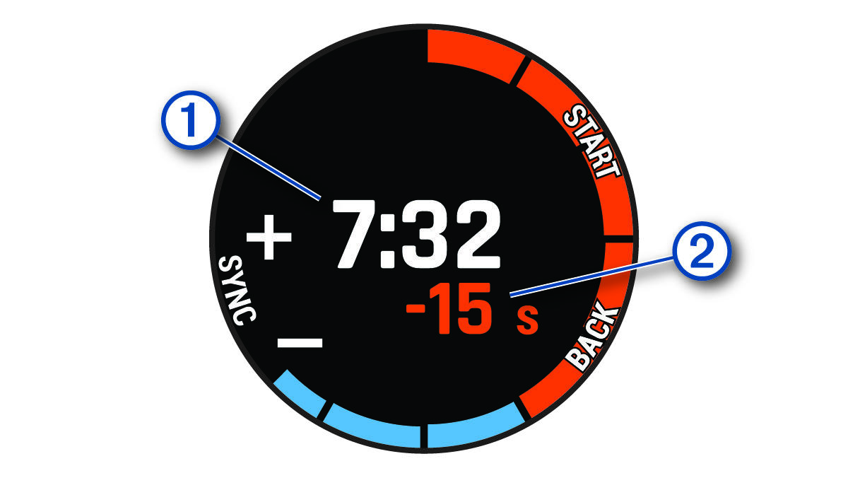 - Select UP and DOWN to synchronize the regatta timer with the official race countdown.
