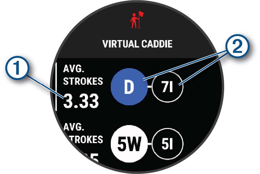 Before you can use the virtual caddie, you must play five rounds with Approach CT10 sensors or enable the Club Prompt setting (), and upload your scorecards. For each round, you must connect to a paired smartphone with the Garmin Golf app. The virtual caddie provides a recommended club and aim direction based on the hole, wind data, and your past performance with each club.
