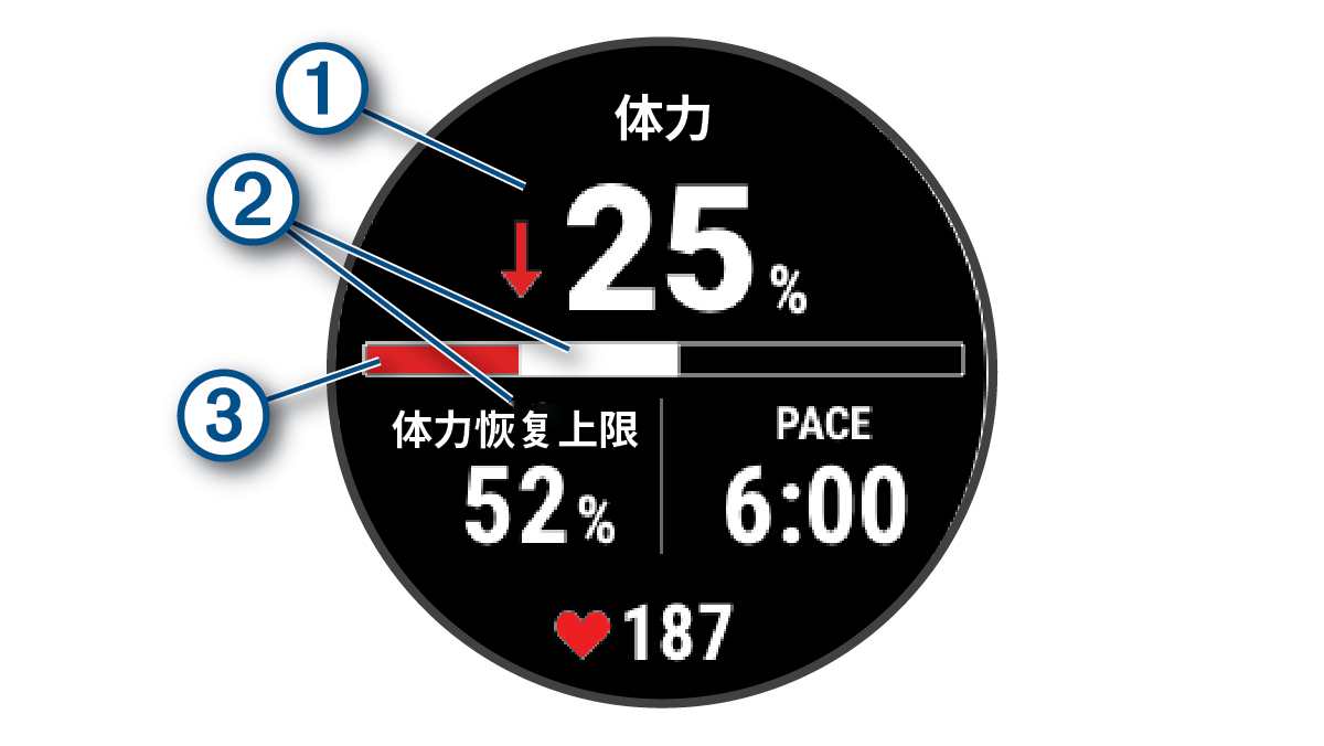 体力数据字段。显示当前的体力百分比、剩余距离或剩余时间。 |