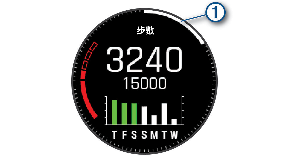 自動目標裝置會根據您先前的活動等級,計算您的每日步數目標。當您白天在移動時,裝置會顯示您每日目標的進度 ①。如果不想使用此功能,您也可以在 Garmin Connect 上自訂個人目標步數。首頁訓練活動追蹤自動目標