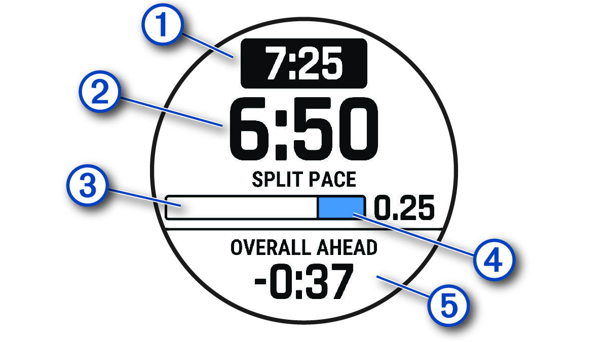 The device displays your target split pace