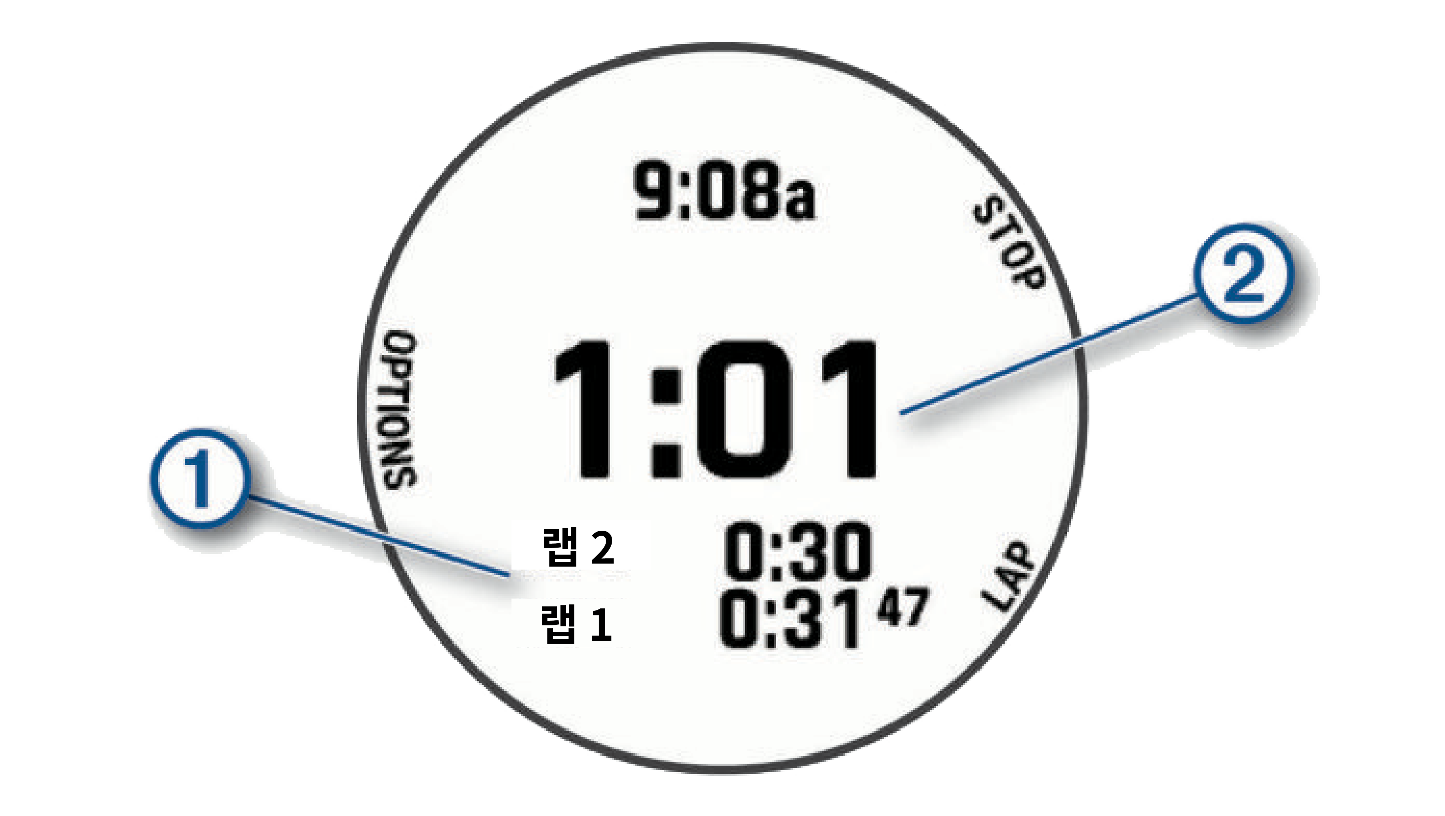 - LAP을 눌러서 랩 타이머①를 시작합니다.