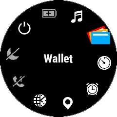 เมนูควบคุมประกอบด้วยตัวเลือกต่าง ๆ, เช่น การเปิดโหมดห้ามรบกวน, การล็อกปุ่มกด, และการปิดอุปกรณ์ คุณยังสามารถเปิด Garmin Pay wallet ได้อีกด้วย