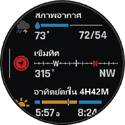ภาพรวมช่วยให้เข้าถึงข้อมูลด้านสุขภาพ ข้อมูลกิจกรรม เซนเซอร์ในตัว และอื่น ๆ ได้อย่างรวดเร็ว เมื่อคุณจับคู่นาฬิกา คุณจะดูข้อมูลจากโทรศัพท์ได้ เช่น การแจ้งเตือน สภาพอากาศ และกิจกรรมในปฏิทิน
