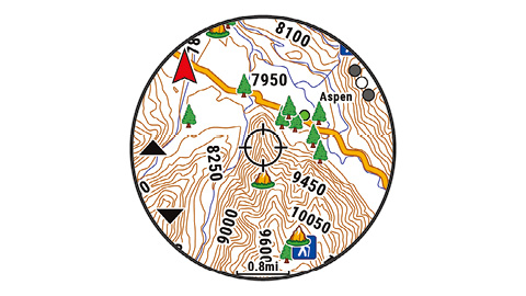 - ในการใช้หน้าจอสัมผัส ให้แตะแผนที่ แตะและลากเพื่อวางตำแหน่งเป้า แล้วกด UP หรือ DOWN เพื่อซูมเข้าหรือออก