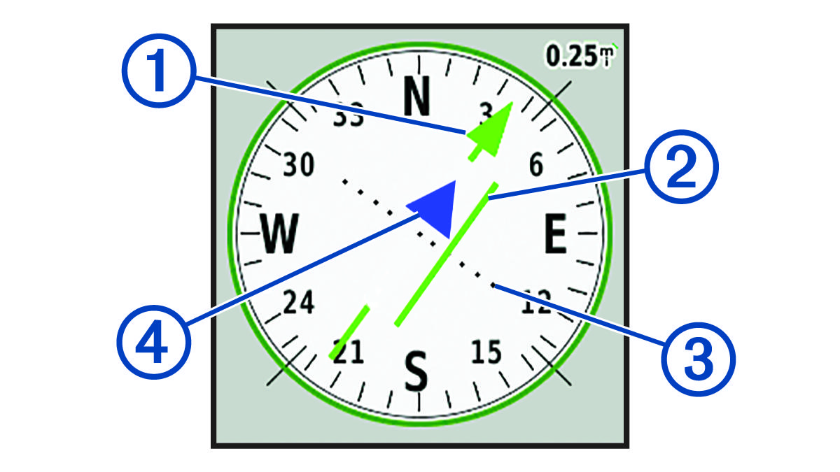 Thiết bị có la bàn điện tử 3 trục. Bạn nên hiệu chỉnh la bàn sau khi di chuyển quãng đường dài hoặc thay đổi nhiệt độ.