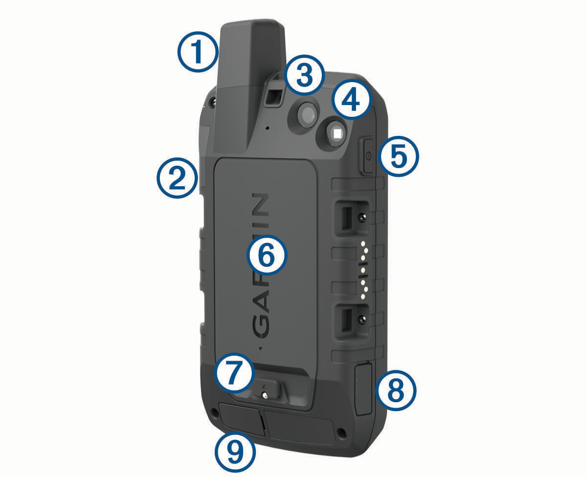 Port Iridium dan anterna GNSS eksternal (di bawah penutup karet) |