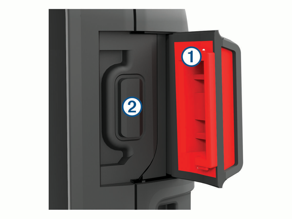 - Angkat tutup pelindung ① dari tombol SOS ②.