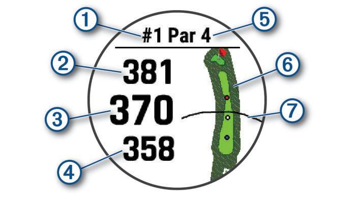 NOTE: Because pin locations change, the device calculates the distance to the front, middle, and back of the green, but not the actual pin location.