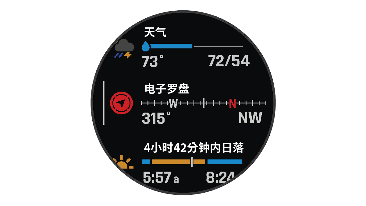 设备出厂时已预载多种 Widgets 小工具。若您将设备与智能手机进行配对后,还有更多小工具可供使用。