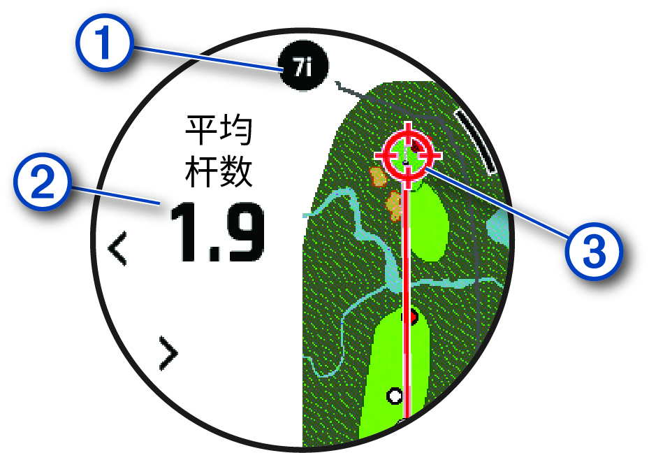 显示该球洞的球杆或球杆组合建议。您可以点一下 |