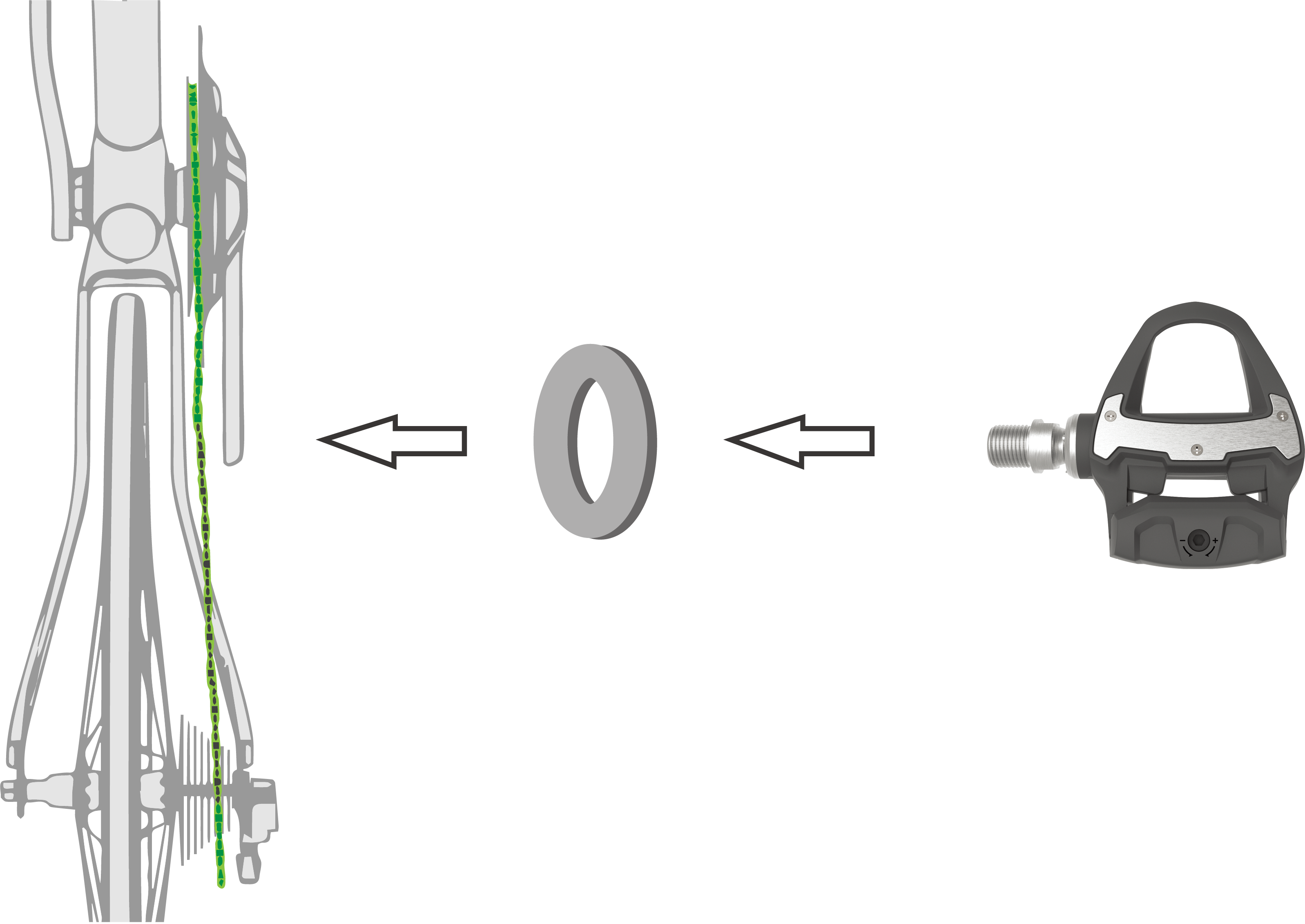 Nếu bàn đạp cọ xát vào xích, bạn có thể lắp thêm vòng đệm vào giữa trục chính và giò dĩa để tăng khoảng hở. Để duy trì hệ số q bằng nhau giữa hai bên, bạn có thể bổ sung thêm một vòng đệm vào trục bàn đạp bên trái.