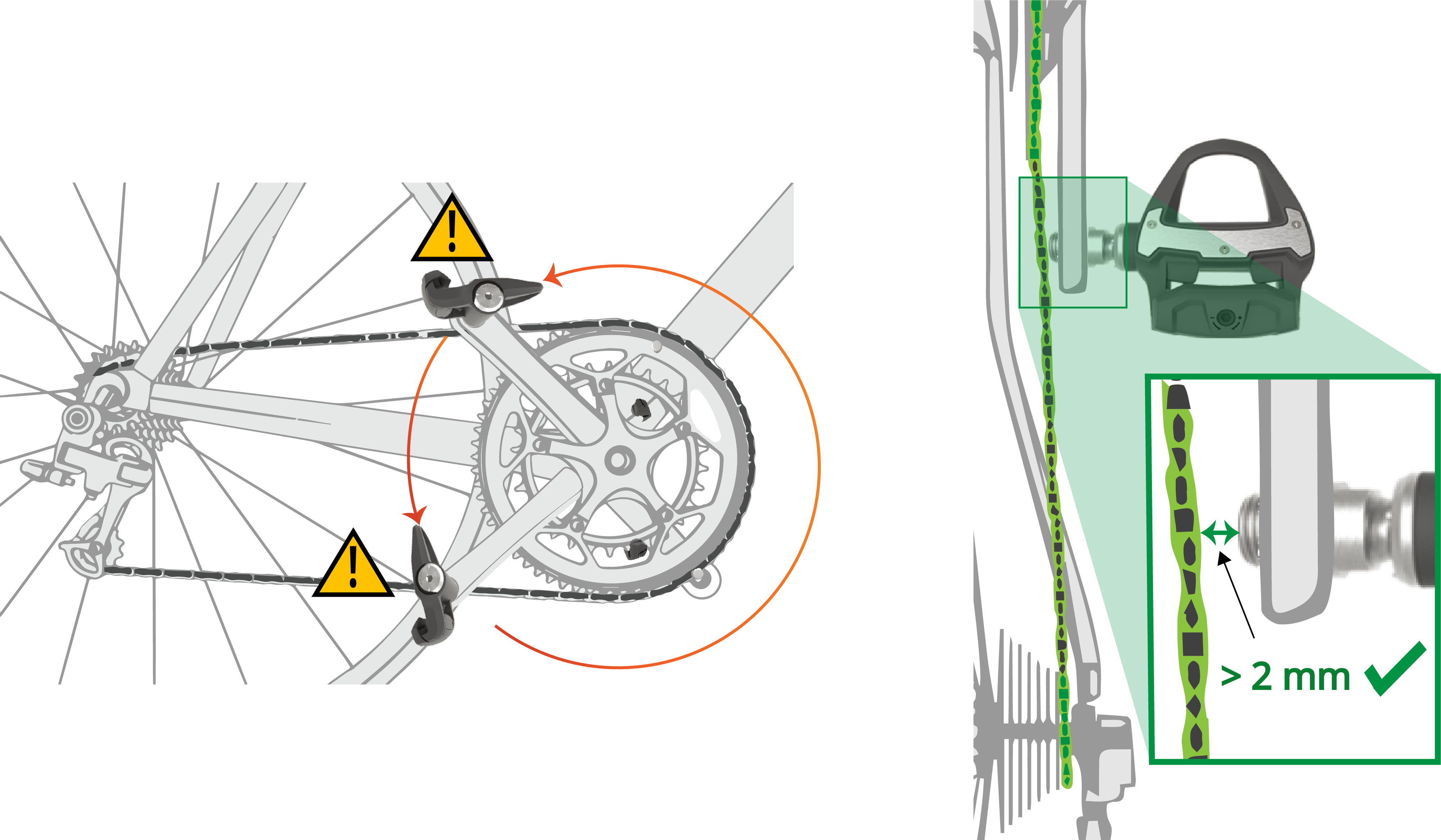 若您的踏板會摩擦鏈條,您可在踏板和曲柄之間加裝踏板墊片以增加間隙。為了保持相等的 Q-Factor,可以在左側踏板增加一個墊片。