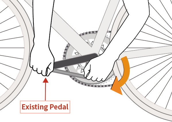 - Continue rotating the pedal wrench in the same direction until the pedal comes off.