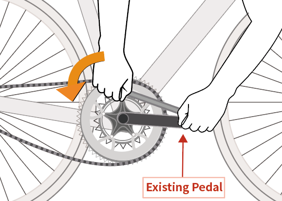 - Attach the pedal wrench to the spindle with the pedal wrench pointing towards the rear of the bike.