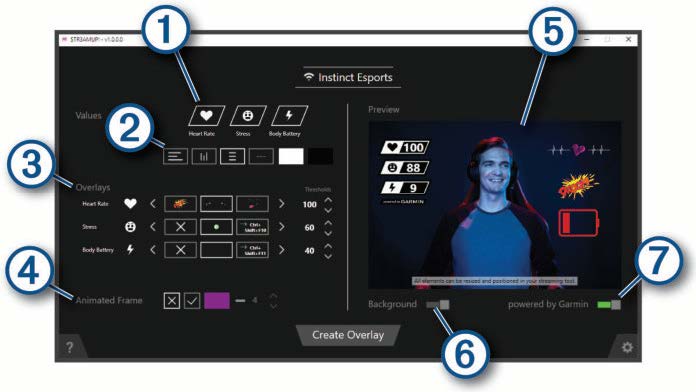 để đặt giá trị ngưỡng khi biểu tượng xuất hiện.LƯU Ý: Bạn có thể kích hoạt hiệu ứng âm thanh và bộ lọc video của các công cụ bên thứ ba bằng cách sử dụng các phím nóng gắn với ngưỡng dữ liệu sinh trắc học. Để sử dụng các hiệu ứng này, hãy chọn nút Hotkeys trong ứng dụng STR3AMUP! và thiết lập cùng một Hotkeys trong công cụ của bên thứ ba.