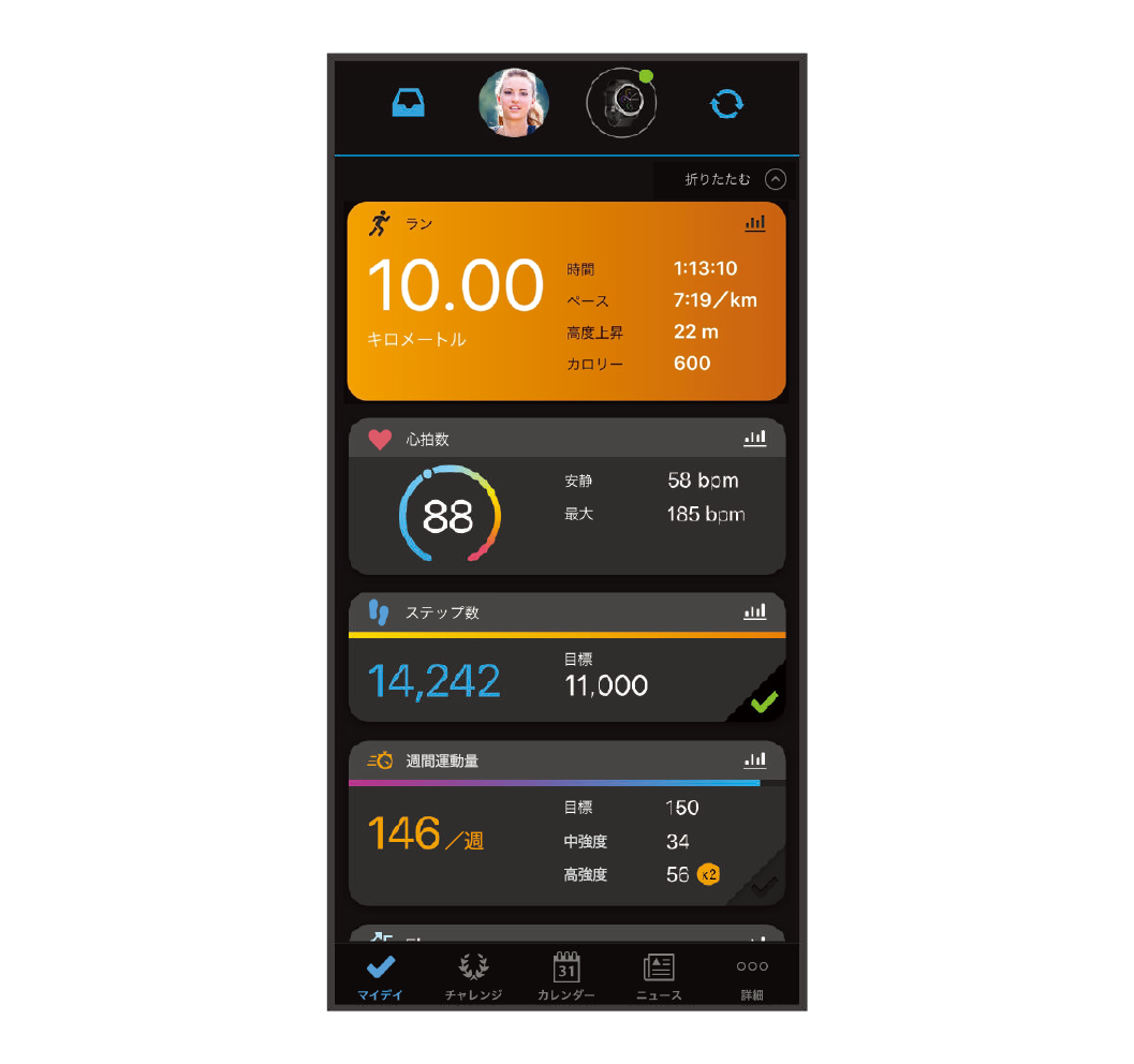 データの共有:コネクション(Garmin Connectアカウント上の友人)同士でアクティビティをフォローしたり、リンクを共有したりすることができます。