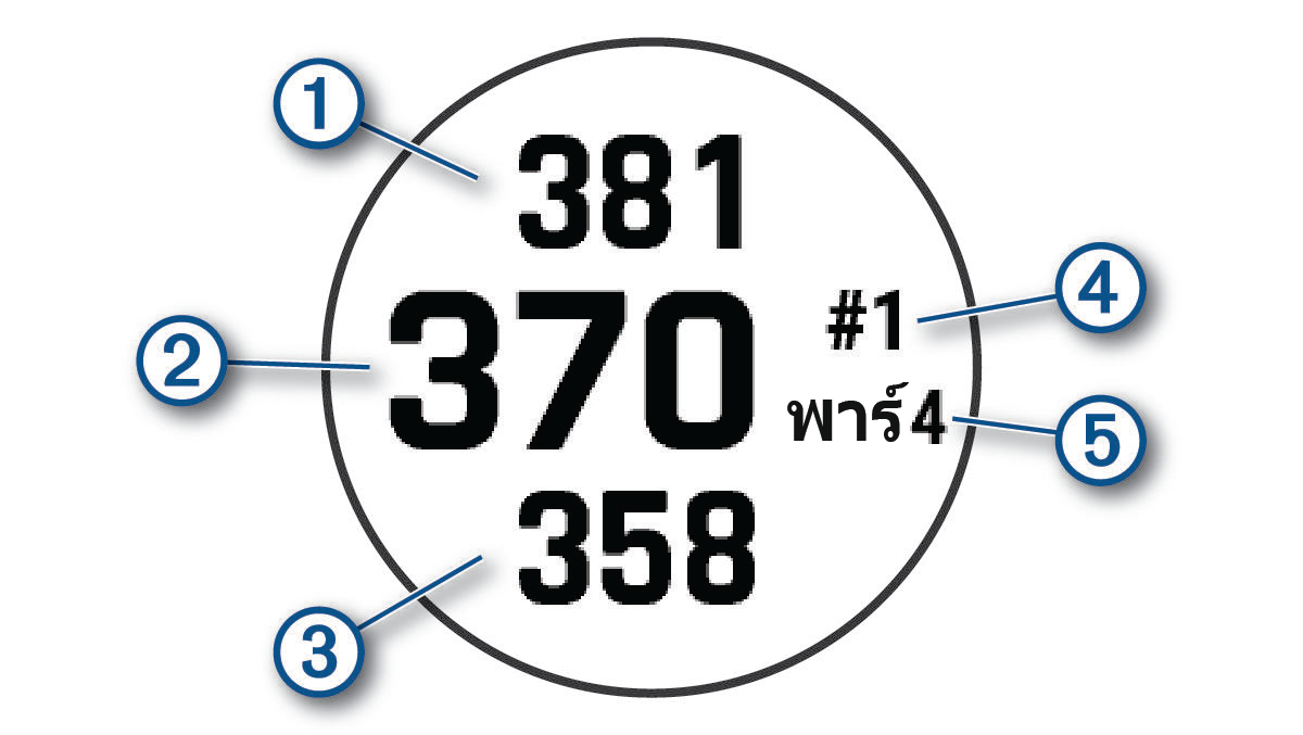 ระยะทางไปยังตรงกลางของกรีนหรือตำแหน่งที่เลือกปักหมุดไว้ |