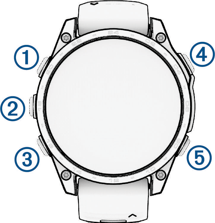 押す:項目を選択 ウォッチフェイスページで押す:アプリとアクティビティのリストを開く( アクティビティ&アプリ) 押す:アクティビティのタイマーを開始/停止( アクティビティを開始する) 長押し:音声コマンドを開く( 音声コマンドを使用する) |