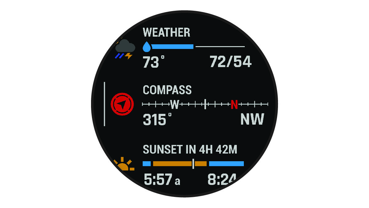 设备出厂时已预载多种 Widgets 小工具。若您将设备与智能手机进行配对后,还有更多小工具可供使用。