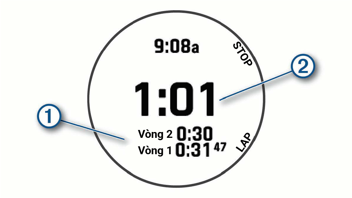 - Nhấn LAP để khởi động lại bộ hẹn giờ vòng hoạt động