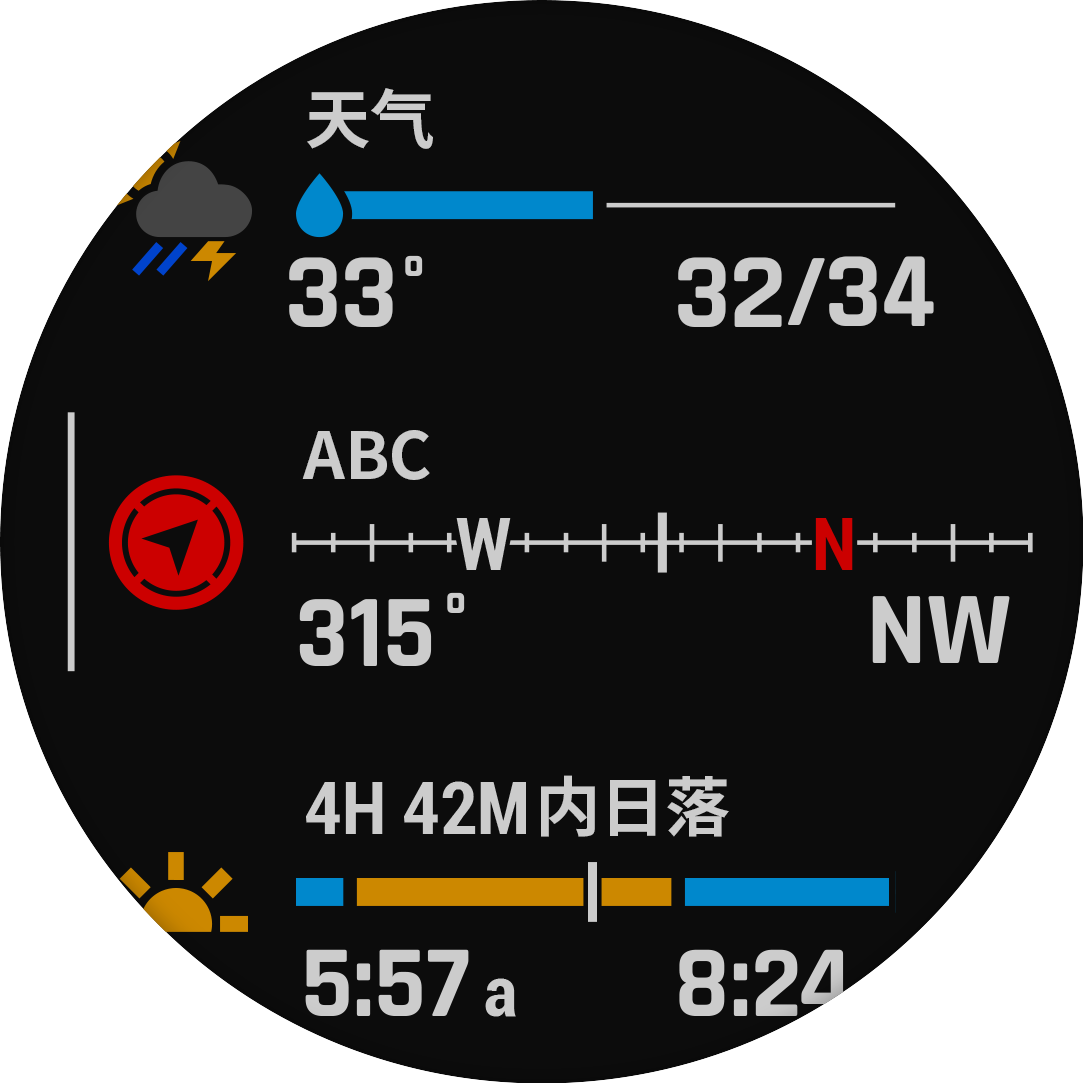 设备出厂时已预载多种 Widgets 小工具。若您将设备与智能手机进行配对后,还有更多小工具可供使用。