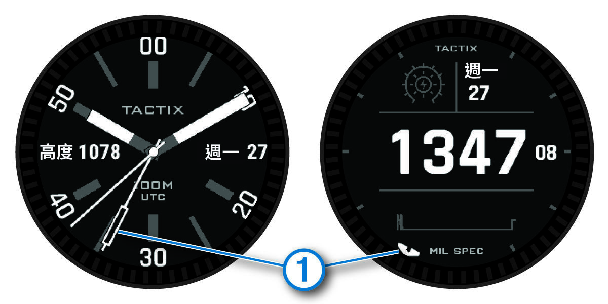 世界標準時間(UTC)指針。參考手錶上的 24 小時標記。