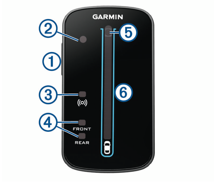 Thay đổi màu sắc dựa trên mức nguy hiểm tiềm tàng. Màu xanh lá cây chỉ báo không có xe nào được phát hiện. Màu hổ phách chỉ báo một chiếc xe đang đến gần. Màu đỏ chỉ báo một chiếc xe đang chạy về phía trước với tốc độ cao. |