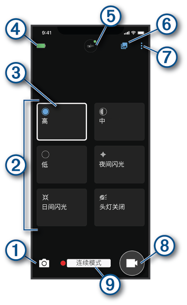 Varia 应用程序通过蓝牙连接 Varia Vue 前灯。该应用程序会显示灯光信息、设置、视频和照片。