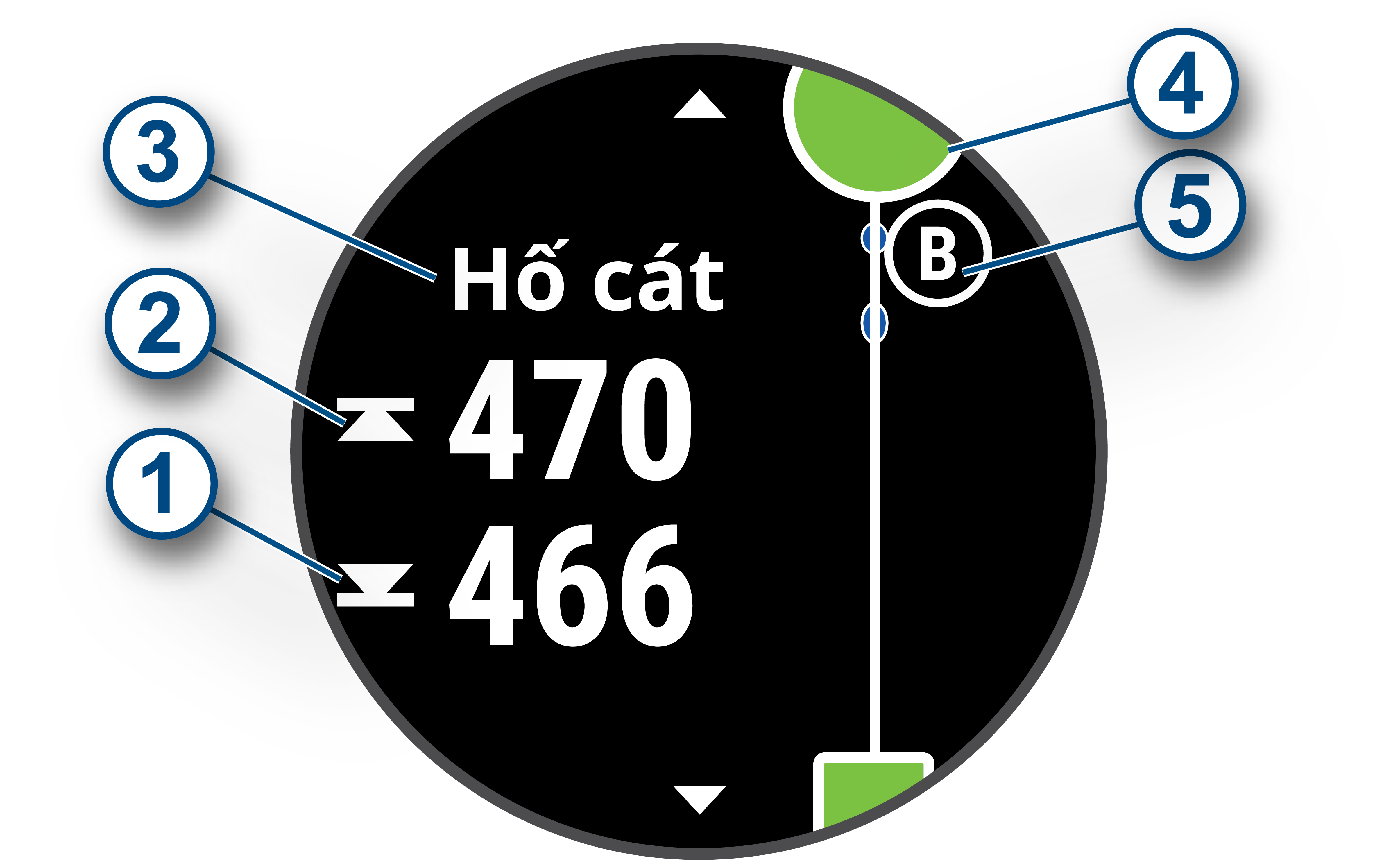 Bạn có thể xem khoảng cách đến các mối nguy hiểm dọc theo đường lăn bóng của các lỗ Par 4 và 5. Các mối nguy hiểm mà ảnh hưởng đến lựa chọn cú đánh được hiển thị riêng lẻ hoặc theo nhóm để giúp bạn xác định khoảng cách cú phát bóng hoặc khoảng cách bóng tiếp đất.