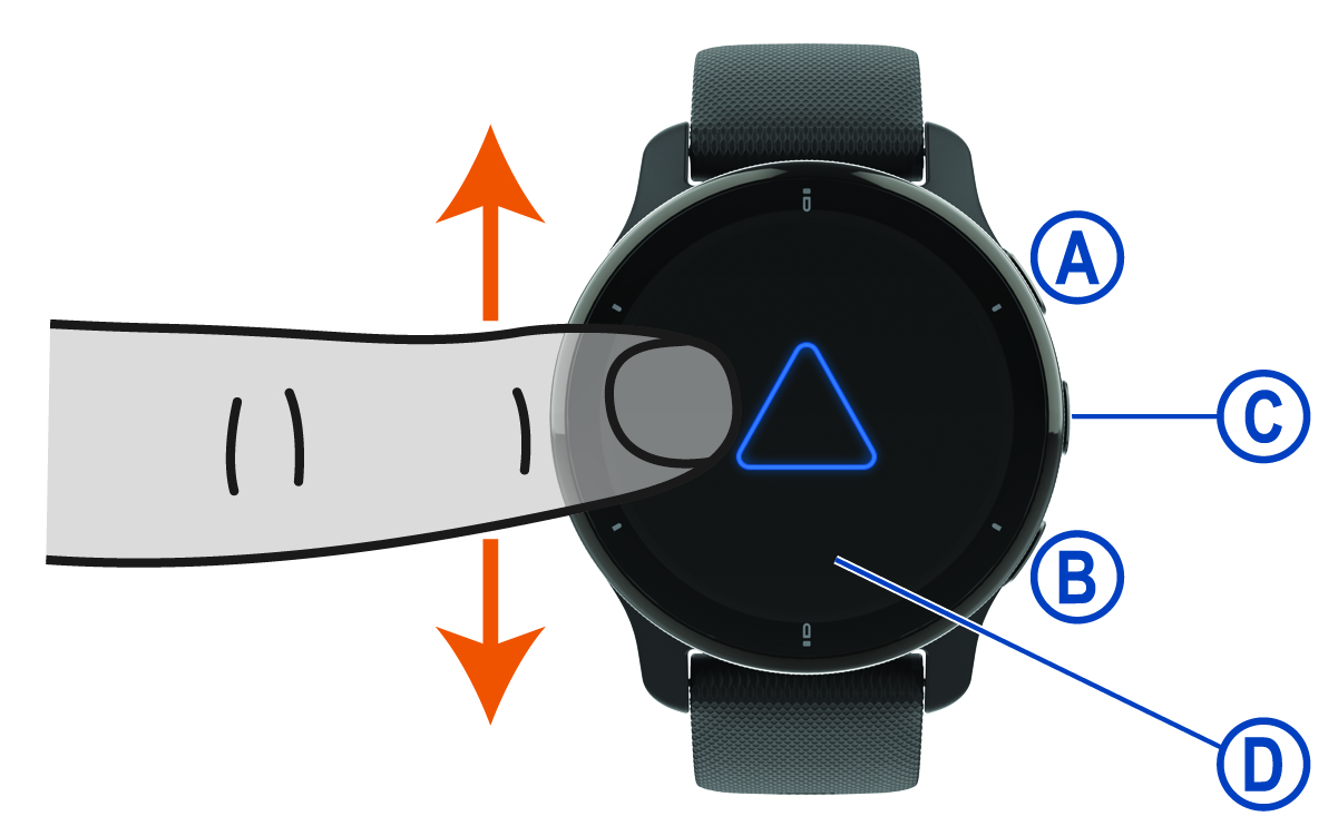 Tahan hingga jam tangan bergetar 3 kali untuk meminta bantuan (Fitur Keselamatan dan Pelacakan, halaman 8).