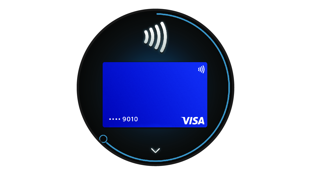- Garmin Pay 지갑에 여러 장의 카드를 추가한 경우, 다른 카드로 변경하려면 화면을 밉니다 (선택사항).