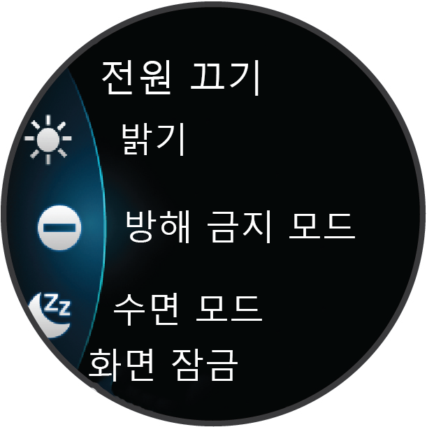 화면 밝기를 낮추거나 경보 및 알림을 비활성화하기 위한 방해금지 모드를 활성화 또는 비활성화하려면 선택합니다. 예를 들면 영화관에서 영화 감상 중에 이 모드를 사용할 수 있습니다. |