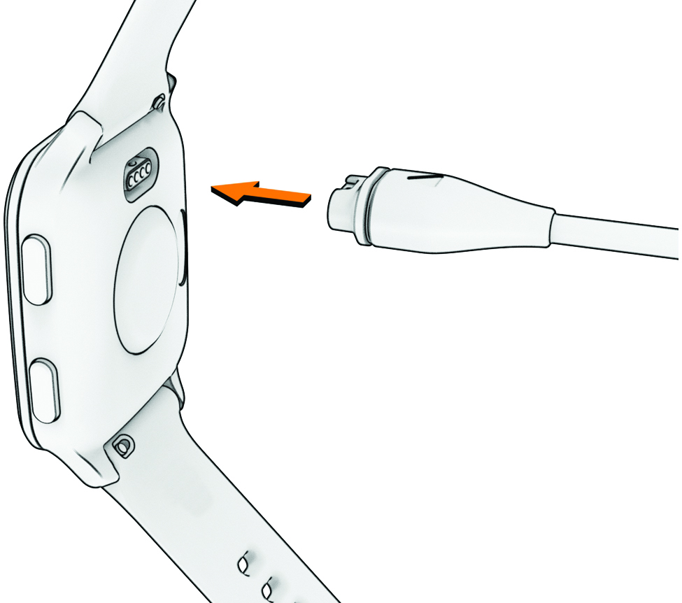 - Colokkan ujung kecil kabel USB ke port pengisian pada jam tangan Anda.