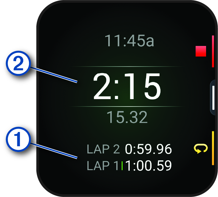 - To enable or disable lap recording, swipe left, and select Lap Key.