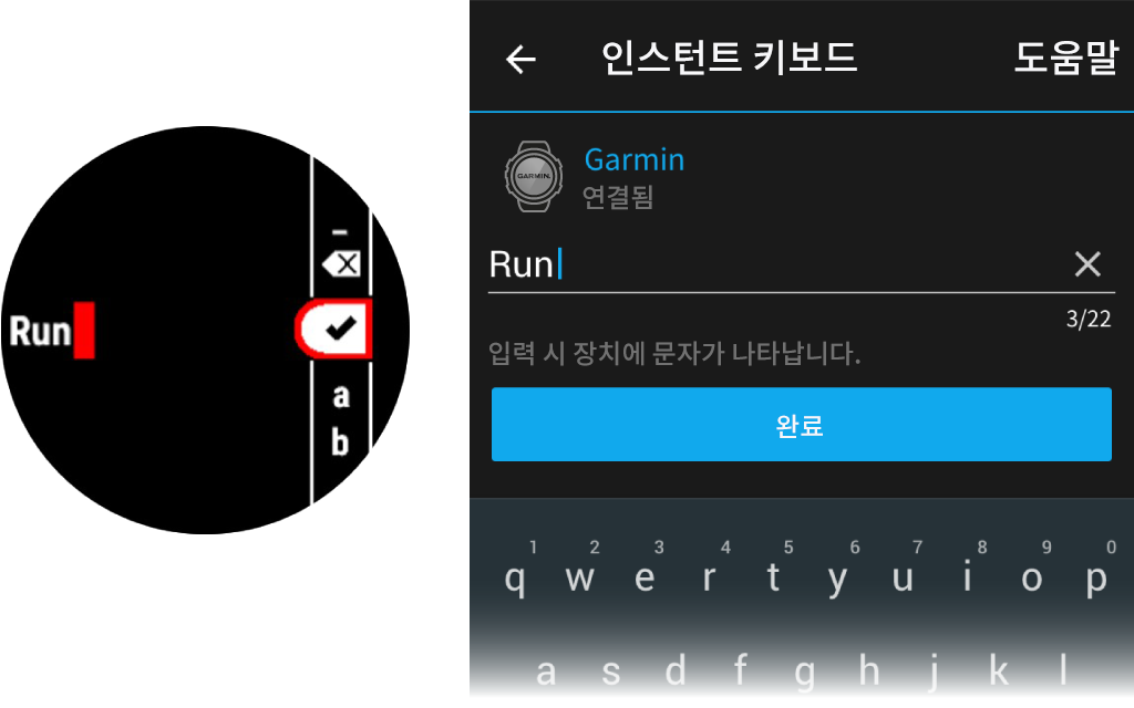 인스턴트 키보드를 사용하면 Garmin Connect 앱을 사용하여 장치에 텍스트를 빠르게 입력할 수 있습니다.