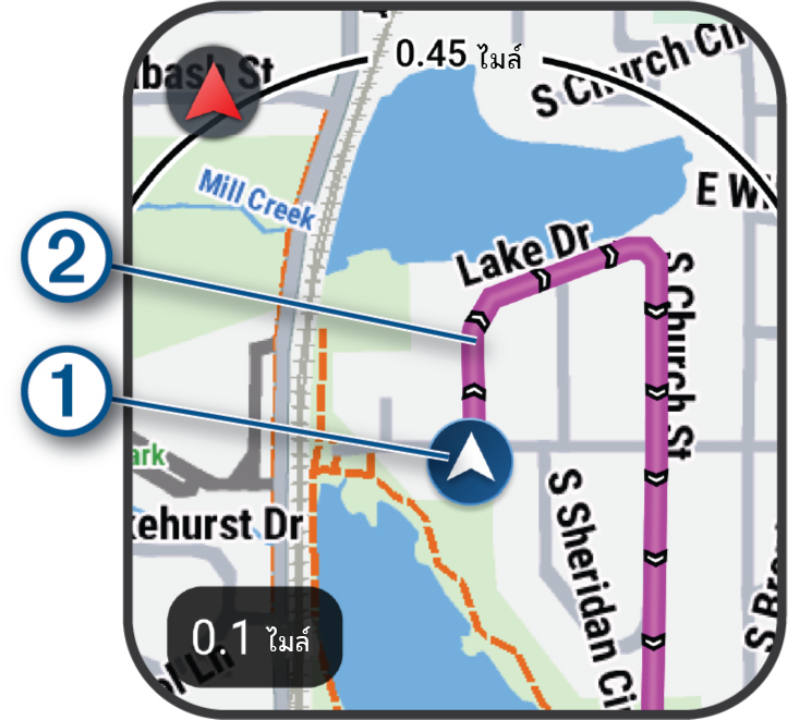 คุณสามารถนำทางกลับไปยังจุดเริ่มต้นของกิจกรรมปัจจุบันของคุณแบบเป็นเส้นตรงหรือตามเส้นทางที่คุณได้เดินทางผ่านมาแล้วได้ คุณสมบัตินี้มีให้ใช้งานเฉพาะกิจกรรมที่ใช้ GPS เท่านั้น