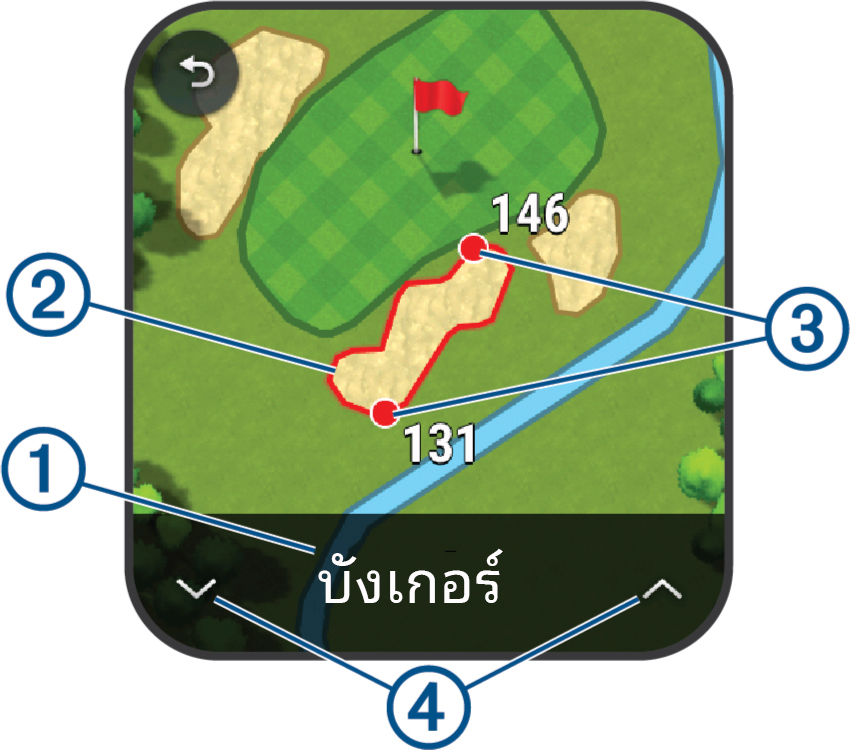 คุณสามารถแตะที่ลูกศรเพื่อดูอุปสรรค หรือ layups ของหลุม |
