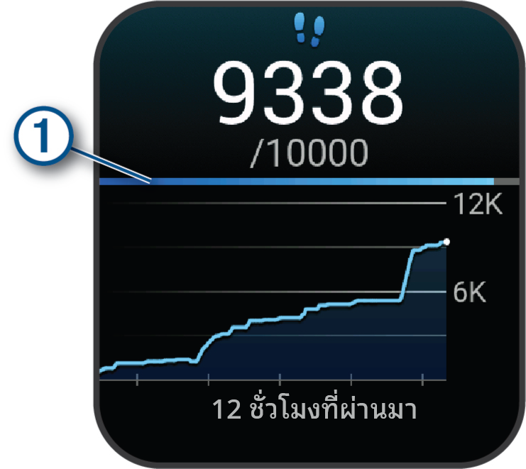 นาฬิกาสร้างเป้าหมายก้าวประจำวันโดยอัตโนมัติ อ้างอิงจากระดับกิจกรรมก่อนหน้านี้ของคุณ ขณะที่คุณเคลื่อนไหวระหว่างวัน นาฬิกาจะแสดงความคืบหน้าของคุณไปสู่เป้าหมายประจำวันของคุณ