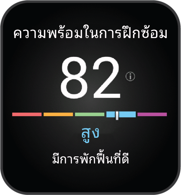 ความพร้อมในการฝึกของคุณคือคะแนนและข้อความสั้นที่ช่วยให้คุณรู้ถึงความพร้อมสำหรับการฝึกในแต่ละวัน คะแนนถูกคำนวณและอัปเดตอย่างต่อเนื่องทั้งวันโดยใช้ปัจจับเหล่านี้: