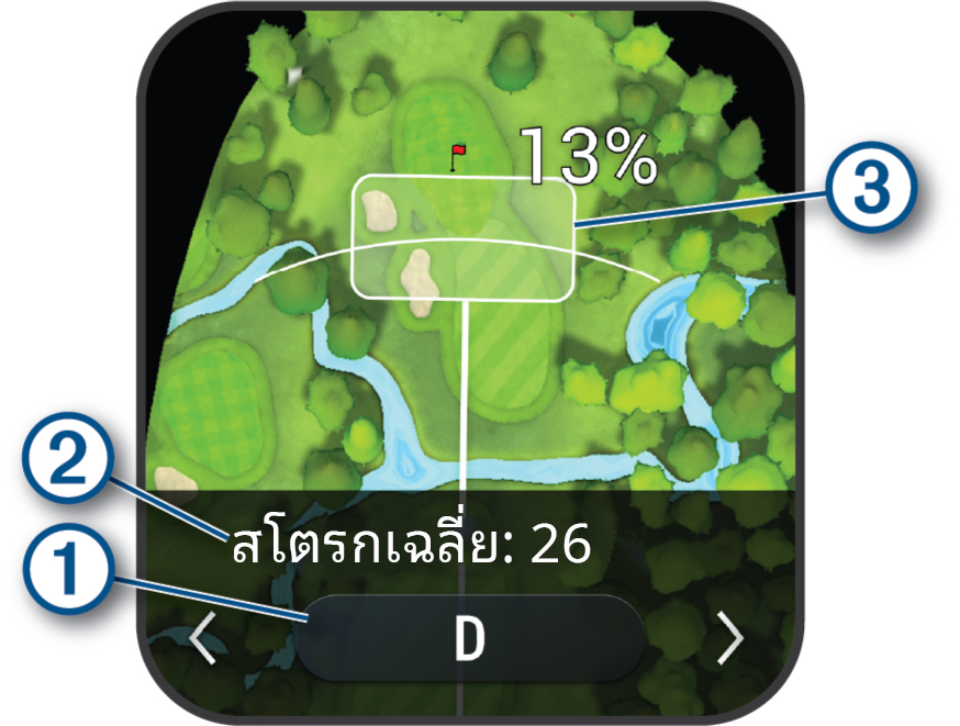 แสดงพื้นที่การกระจายการตีสำหรับช็อตถัดไปของคุณด้วยคำแนะนำหัวไม้ อิงตามประวัติการตีของคุณด้วยหัวไม้ |