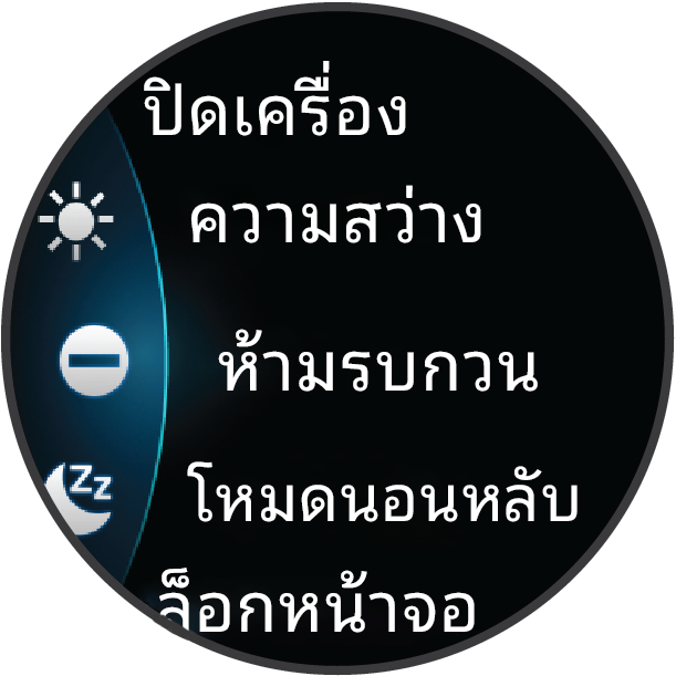 เลือกเพื่อเปิดใช้งานหรือปิดใช้งานโหมดห้ามรบกวนเพื่อลดแสงหน้าจอและปิดใช้งานการแจ้งเตือนและข้อความเตือน ยกตัวอย่างเช่น คุณสามารถใช้โหมดนี้ในขณะชมภาพยนตร์ |