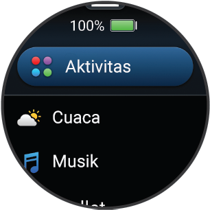 Anda dapat menyesuaikan jam tangan menggunakan menu aplikasi yang memungkinkan Anda mengakses opsi dan fitur jam tangan dengan cepat. Beberapa aplikasi memerlukan koneksi Bluetooth ke ponsel yang kompatibel. Banyak aplikasi juga dapat ditemukan di kilasan (Kilasan) atau kontrol (Kontrol).