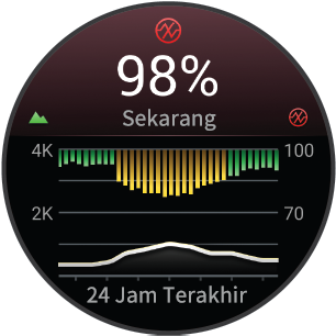 Jam tangan Anda dilengkapi pulse oximeter berbasis pergelangan tangan untuk mengukur saturasi oksigen dalam darah (SpO2). Seiring ketinggian Anda meningkat, tingkat oksigen dalam darah dapat menurun.