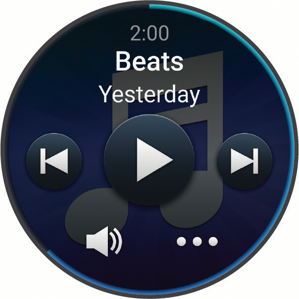 注意:アクティビティ中は、画面を左にスワイプするとミュージックコントロールが開きます。操作可能なオプションは、音楽ソースにより異なる場合があります。