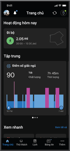 Theo dõi thành tích: Có thể theo dõi các bước hàng ngày, tham gia các cuộc thi vui nhộn với các kết nối khác và đáp ứng các mục tiêu của bạn.