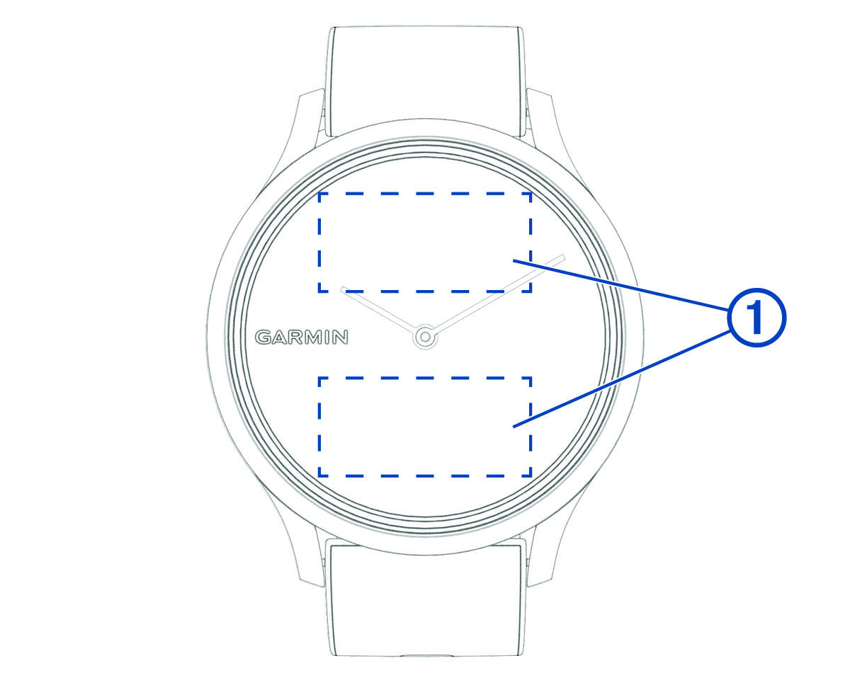 使用设备双击屏幕:双击屏幕 ① 唤醒设备。备注:不使用设备时,屏幕显示会自动关闭。屏幕关闭期间,依然会监测并记录您的活动数据。抬腕亮屏:手腕抬起靠近身体即开启屏幕显示,手腕向身体外侧转动以关闭屏幕。滑动:屏幕亮起时,滑动屏幕来查看不同的小工具或菜单选项。滑动屏幕查看不同的小工具或菜单选项。备注:避免在腕表上方或移动时滑动。为获得最佳效果,请在屏幕区域 ① 中滑动。长按:在设备处于解锁状态时,长按屏幕开启菜单选项。轻敲:轻敲屏幕进行选择。轻敲 回到上一页。主页 产品介绍 使用设备