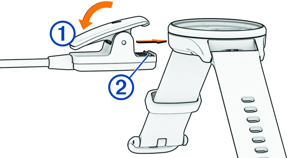 - 워치 뒷면의 접점②에 클립을 잘 정렬합니다.
