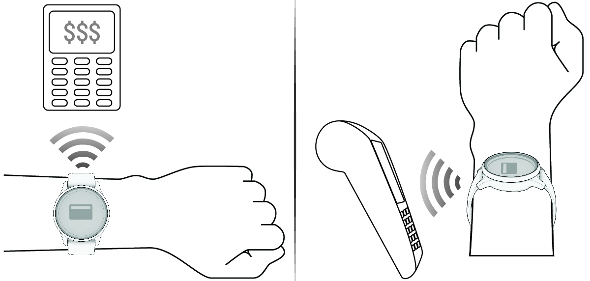 - ภายใน 60 วินาที ถือนาฬิกาของคุณใกล้กับเครื่องอ่านการชำระเงินโดยให้เลข 12 บนขอบนาฬิกาหันหน้าเข้าหาเครื่องอ่าน